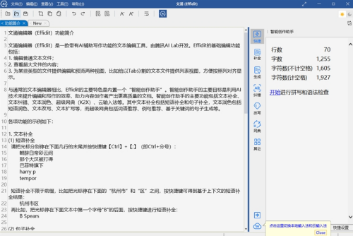 系统支持常规文本编辑与超大型文档查看,创新性采用双视图模式展现特定格式文件。其核心优势在于内置的智能创作模块,包含五大核心功能: