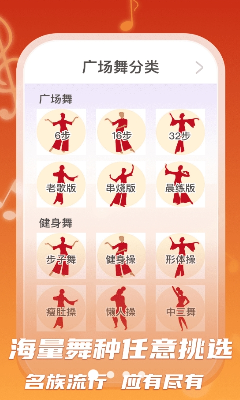 全民健身广场舞健康生活必备是一款专为中老年群体打造的舞蹈学习应用,整合全网优质广场舞教学资源,涵盖健身塑形与文娱休闲双重功能。软件汇聚云裳舞队、糖豆热舞、佳木斯韵律操等二十余种舞蹈流派,同步更新2023年流行舞曲教学,搭配养生知识与兴趣课程,满足用户多元化需求。