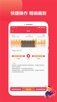 2、智能波形识别技术:通过颜色区分不同频段声波,支持多点触控缩放操作,精准定位到0.1秒级的时间节点进行剪辑操作。