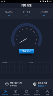 软件搭载智能测速引擎,可同步检测下载速率、上传速度及网络延迟参数。独创多维度数据对比系统,支持单网络质量追踪与跨运营商网络状态比对。测试结果通过可视化图表动态呈现,包含流量消耗统计、IP地址定位等详细信息,便于用户快速定位网络瓶颈。