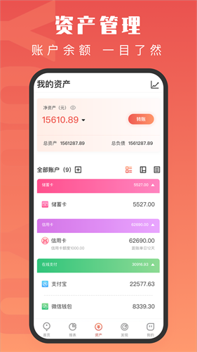 - 资产管理:支持绑定12类电子账户实时同步