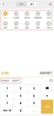 2. 在收支选择界面根据实际情况点选对应类型