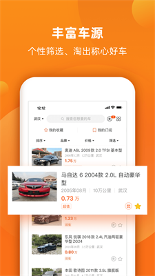 2、多维筛选系统支持品牌、车龄、里程等12项条件组合查询,可视化结果排序帮助用户快速定位目标车型