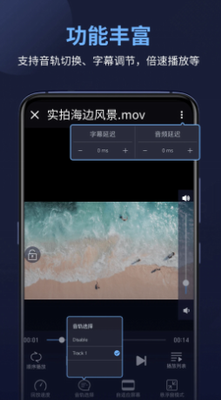 3、智能音画调节系统支持16档倍速播放与声轨实时切换