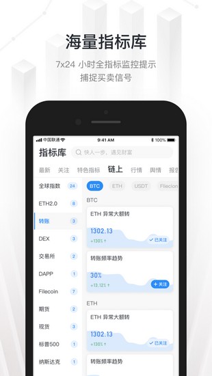 1. 创新开发多维度数据看板,支持用户自定义监测指标组合。可同时跟踪BTC矿工持仓指数、稳定币流通量、交易所净流入等20余项核心数据。