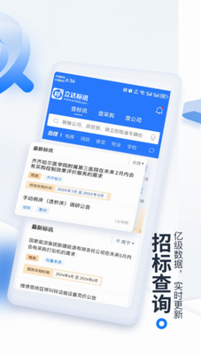 立达标讯手机版高效招标办公软件是专为招投标领域设计的智能服务平台,通过深度整合行业资源与技术创新,助力用户精准把握市场动态,优化项目管理流程。该软件以数据驱动为核心,打造从信息获取到决策支持的全周期服务,为企业和个人提供专业高效的数字化办公解决方案。