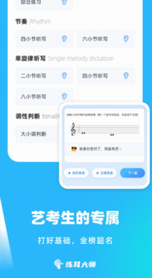 2. 艺考强化模块:涵盖中央院、中国院考纲要求的视唱练耳题型,历年真题覆盖率91%
