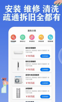 平台整合9大品类90余项专业服务,全面覆盖家电维修、家具养护、水电改造等家庭场景。依托26年行业经验打造的工程师团队,已完成数百万设备维修实践,服务范围延伸至2000余个县市区域。独创的"极速响应"模式确保订单10分钟内接单,80%常见故障实现当日解决。