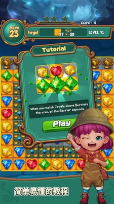 《珠宝冒险》作为一款风靡全球的休闲消除游戏,凭借其独特的宝石碰撞机制与绚丽视觉效果,为玩家打造了一场指尖上的奇幻旅程。游戏以五色宝石为核心元素,通过滑动屏幕实现三消连击,触发连锁爆破特效,搭配精心设计的背景音乐,让每一次消除都成为释放压力的绝佳体验。