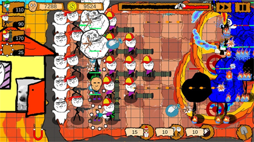 暴漫塔防策略手游是一款融合经典策略玩法与网络流行文化的创新作品。游戏采用辨识度极高的暴走漫画美术风格,将大家耳熟能详的网络表情符号转化为可操作角色,搭配类似植物大战僵尸的塔防机制,创造出独特的策略体验。玩家可通过部署不同功能的暴走角色,在48张特色地图中抵御14种风格迥异的敌人进攻。