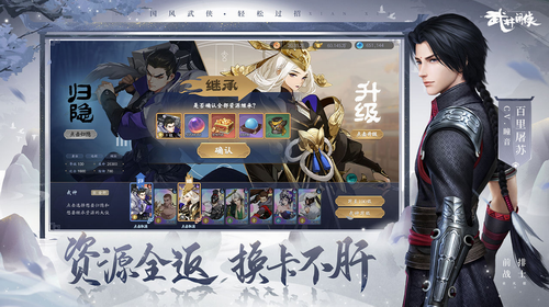 突破传统卡牌游戏的资源限制,采用"武学精要传承"系统,角色进阶后可将经验无损转移至新侠客。云端挂机系统支持离线72小时收益累积,配合智能阵容推荐算法,帮助玩家快速组建最优战队。
