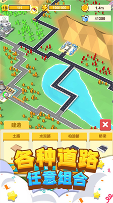 我要修马路无限金币版上线是一款以城市道路规划为核心的模拟建造类游戏,玩家在游戏中将化身城市规划师,通过科学布局道路网络促进城镇经济发展。独特的经济系统设定让玩家在完成道路铺设时,金币数值不仅不会消耗反而随着城市繁荣度提升持续增长,这种创新机制为游戏增添了更多策略性。