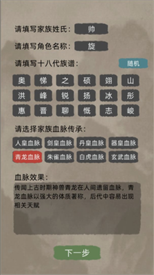 创建家族时可选择特殊血脉传承,后人将有机会觉醒上古神兽血脉,不同血脉对应独特修炼加成,深度还原修真小说中的血脉设定。
