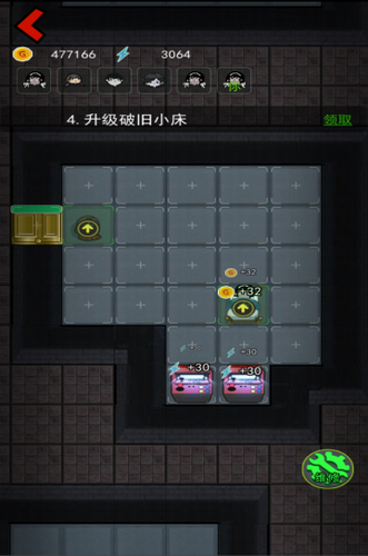 初始阶段建议优先选择中心区域床位,通过蜜獾商店兑换加速道具。当经济达到32金币/秒时,立即建造高级游戏机提升闪电产量。中后期需平衡门锁升级与炮塔阵列建设,金色门锁配合电磁发生器可形成完美防线。值得注意的是,512金币/秒为床铺收益上限,应及时转型攻击型建筑。