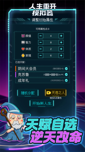 游戏采用创新的人生轨迹树系统,初始属性包含体质、智力、魅力、运气四大维度。玩家可自由分配属性点数开启不同人生剧本:高智力值可能触发科研奇遇,强健体魄有机会解锁运动健将剧情线,而特殊魅力属性则会开启演艺圈发展支线。