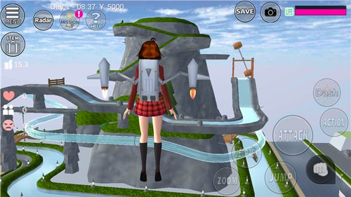 1、突破传统校园模拟框架,支持角色进行跨场景自由探索,从教学楼天台到商业街区实现无缝衔接