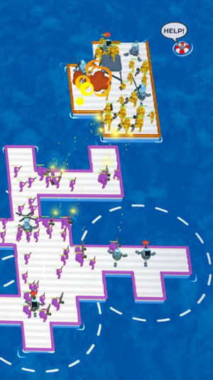 游戏独创动态海域攻防机制,每场战斗需实时收集漂浮的木板、铁锚等建材扩展木筏面积。通过建造防御工事阻挡敌方进攻,同时派遣简笔画士兵占领资源点获取优势。队伍规模会随着战场物资收集量动态变化,最多可组建50人编队实施包围战术。