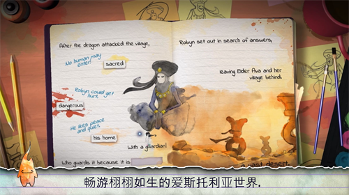 在爱斯托利亚的幻想大陆上,每个场景都经过精心设计。从流淌着荧光墨水的溪谷,到由古老文字构筑的空中回廊,环境本身即是谜题组成部分。游戏独创的「文字塑形」系统要求玩家观察场景细节,通过组合特定词汇触发机关,这种设计既考验逻辑思维又充满探索乐趣。