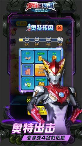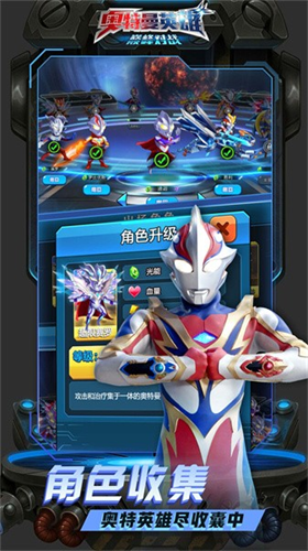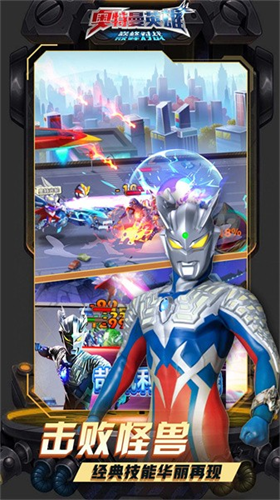1、采用3D引擎技术构建战场,从迪迦空中型到赛罗终极铠甲,每位奥特曼的粒子特效均精准还原特摄剧设定