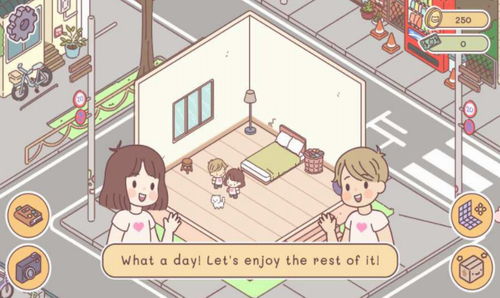 4、动态天气系统与家具产生互动,雨天窗台会自动积水,晴天玩偶会跑到阳台晒太阳