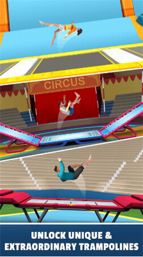 这款以蹦床运动为核心的休闲游戏,通过创新的物理引擎带来真实的弹跳体验。美式卡通画风搭配精细建模,从庭院到专业体育馆的十余种场景中,玩家能操控角色完成空翻三周转体等高难度动作。游戏不仅还原了奥运蹦床项目的专业度,更通过趣味玩法降低操作门槛,让普通用户也能感受腾空翻转的刺激。