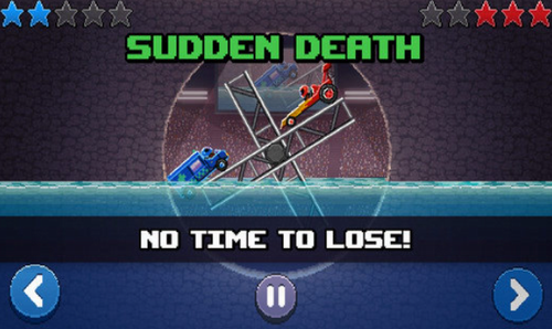 撞头赛车无限金币钻石版将暴力美学与赛车竞技完美结合,采用经典像素风格呈现激战场面。游戏基于先进物理引擎开发,玩家通过简单左右按键即可操控赛车,利用场地电锯、坡道等机关道具,以撞击对手头部为终极目标。独创的5分制竞技规则让每场对决充满变数,超百款造型夸张的赛车可供收集改装。