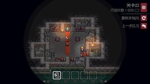 本作创新性地将装备系统与场景解谜深度融合。冒险者可通过切换剑、盾、弓箭等装备获得不同能力:利剑可斩击近身敌人,盾牌可推动障碍物,弓箭实现远程打击,特殊手套更能调整怪物站位。每个关卡要求玩家精准计算移动步数,合理搭配装备技能,最终达成清场通关目标。通关后还可尝试优化路线追求更高分数。