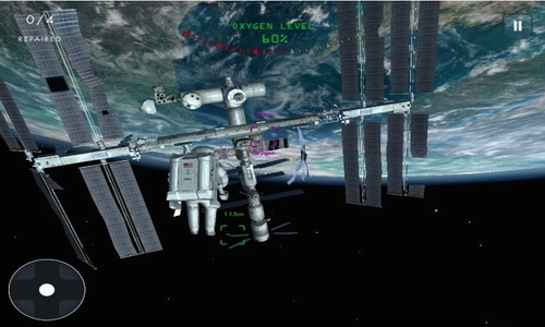 空间站维修挑战:身着宇航服进行舱外作业时,需时刻关注氧气余量。游戏创新采用三色定位系统——绿色标识故障点、紫色标注补给站、红色提示危险区域,构建出极具策略性的移动路径规划玩法。