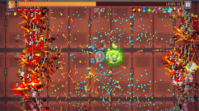 独创的360度弹幕机制,搭配12种属性弹药,玩家可组合出冰冻穿透、燃烧散射等特殊攻击效果。