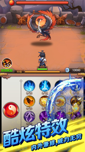 3、武学融合系统收录七十二种道家典籍与武林绝学,玩家可通过乾坤八卦盘自由组合技能,创造出专属的战斗流派。