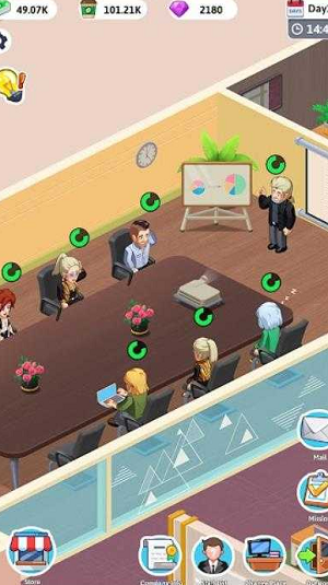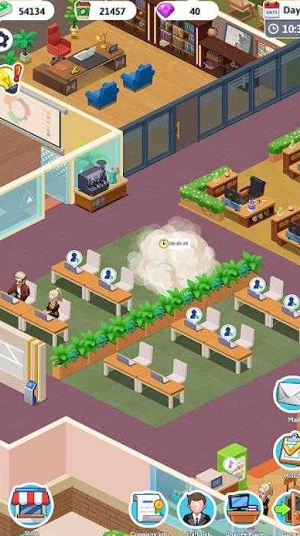 通过智能投资系统,玩家可将收益用于购置新型办公设备,或建造员工健身房、休闲咖啡吧等配套设施。每项设施升级都会带来连锁反应——更舒适的环境能提升15%工作效率,而完善的餐饮区可减少30%的员工流失率。