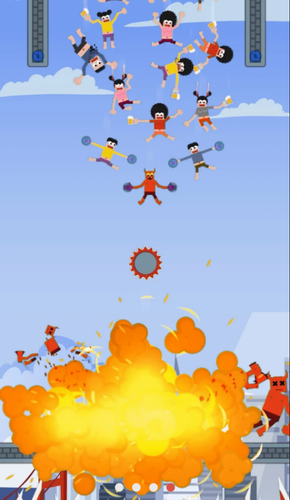 2、动态场景设计包含旋转齿轮、移动平台、爆破装置等40+种机关元素,关卡难度随场景复杂度逐步提升。部分关卡需同时保护多名坠落角色。