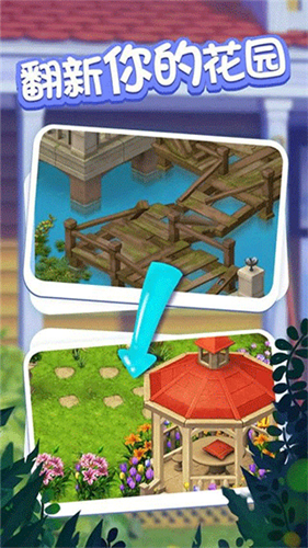 游戏独创双线推进机制,在经典三消关卡中融入建造进度系统。每次成功消除不仅带来视觉享受,更会积累花园改造资源。随着剧情推进,玩家可解锁维多利亚玫瑰园、洛可可式凉亭等12种特色建筑模块,每种建筑配备专属互动动画效果。