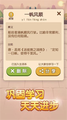 游戏内嵌超过7000条精选成语数据库,涵盖从《诗经》《楚辞》到明清小说的经典词条。通过趣味填词帮助玩家掌握如「筚路蓝缕」等生僻成语,理解「韦编三绝」等历史典故,在娱乐中完成文化积累。