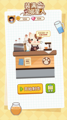 2、喵星人店员换装系统,收集咖啡豆可兑换厨师帽、小领结等个性装扮