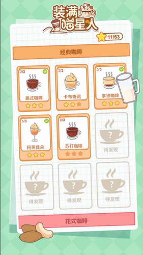2、咖啡知识彩蛋系统,完成特定关卡可解锁拿铁艺术发展史等趣味百科内容