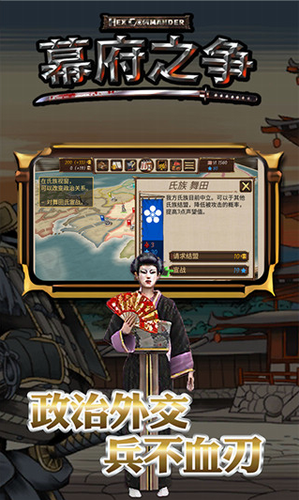 幕府风云策略战争手游以日本战国时代为背景,采用复古手绘美术风格呈现独特视觉体验。游戏通过3D动态场景技术,让玩家在俯瞰战场全局的同时,可自由缩放视角观察铠甲纹饰、刀剑反光等精细建模。十五个真实历史氏族可供选择,每个势力都配备专属兵种与科技树,玩家需通过资源调配、地形利用和兵种克制等策略要素,在动态季节变化的沙盘上谱写属于自己的战国史诗。