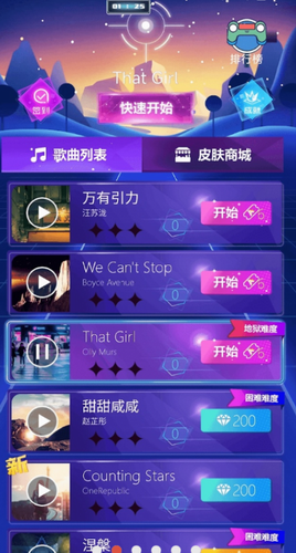 1.动态粒子引擎渲染出霓虹光轨特效,每首曲目配备专属场景变换效果