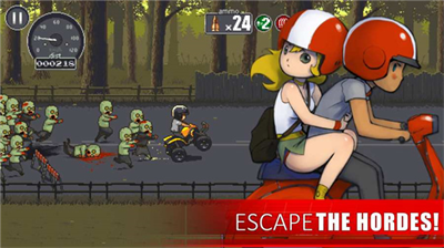僵尸突围末日飞车逃生内置中文版采用复古像素美术风格,构建出独特的末日逃亡世界。玩家将驾驶改装机车穿梭于残破都市,通过精准操控躲避障碍物,利用场景中的油桶、路障制造连锁爆炸,独创的飞车射击玩法带来双重操作快感。开场动画中主角被僵尸群追逐的紧张桥段,配合轮胎摩擦音效与摇滚配乐,瞬间将玩家代入热血沸腾的生存之战。