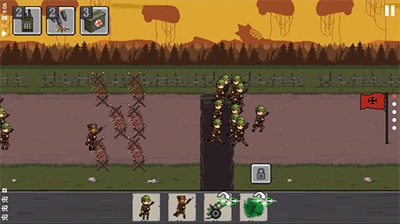 本作运用3D建模技术突破传统像素游戏表现力,通过俯视45度战场视角展现立体化作战场景。游戏收录步兵、炮兵、装甲兵等二十余种特色兵种,每种单位均配备符合历史特征的武器装备系统。动态天气与地形系统将影响行军路线与战术执行,真实还原堑壕战、毒气战等标志性战争形态。
