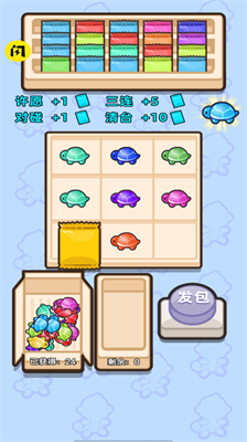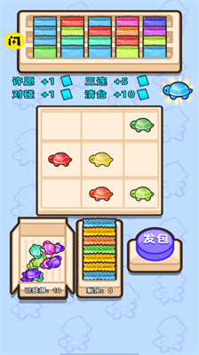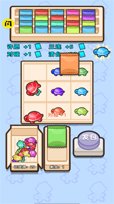 游戏采用动态难度平衡机制,前30关帮助玩家熟悉基础操作,中期关卡引入时间沙漏与步数限制双重挑战模式。特色道具系统包含四类强化工具:爆破龟壳可清除3x3范围内元素,变色龟能重组当前棋盘配色,彩虹龟实现全屏同色消除,时间冻结器可延长限时关卡15秒操作时间。