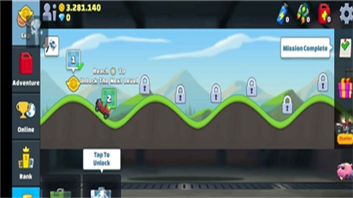 作为经典越野竞速系列的延续,《登山赛车3》延续了前作核心玩法,玩家需操控赛车在复杂地形中突破极限。游戏采用拟真物理引擎,当玩家升级发动机时,可感受不同层次的引擎轰鸣声。通过完成50+特色关卡与冒险任务,不仅能解锁吉普车、方程式赛车等12种车型,还能自由改装悬挂系统与轮胎抓地力。全球排行榜功能让每次冲线都充满竞技乐趣,更有创意工坊支持玩家设计专属赛道。