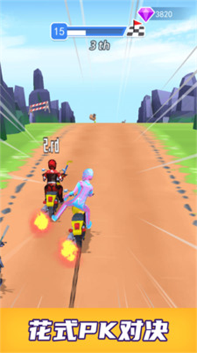 3、特技表演系统支持空中转体、后轮平衡等专业动作,完美落地可获得加速奖励