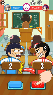 同桌大作战双人欢乐对决是近期备受关注的休闲竞技手游,通过红蓝对抗玩法还原校园课间趣味互动。游戏采用独特的双屏操作模式,让两位玩家重温学生时代与同桌"相爱相杀"的经典场景。在老师背对讲台时,双方需要通过高频点击屏幕展开手速比拼,同时还要留意老师突然回头的瞬间,及时停止动作避免被发现。