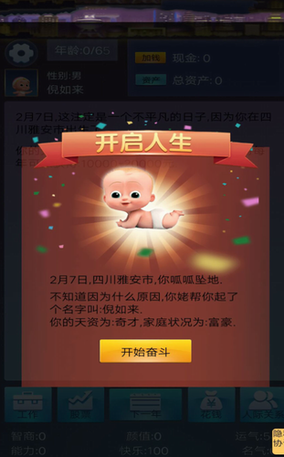 1、天赋随机生成系统让每次开局充满惊喜,可能获得艺术世家背景或运动健将体质