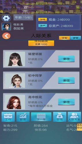 2、智能属性成长系统根据玩家选择动态调整,真实还原人生轨迹的蝴蝶效应