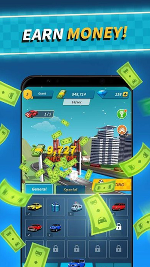 *通过合并同等级车辆解锁稀有车型,涵盖从家用轿车到工程机械的丰富品类