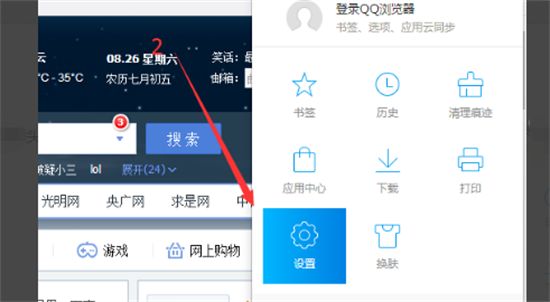 2、在下拉面板中选择[设置]选项,该区域集成了浏览器的基础配置与个性化调整功能,是优化使用体验的核心控制区