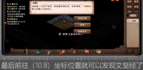 成功破解机关后,通往藏经阁的石门将缓缓开启。最终在(10.8)坐标的书案上可见散发着青芒的文皇经卷轴。获取时需注意周围有守护机关,建议快速拾取后立即使用烟雾弹脱离战斗。