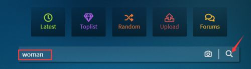2、进入网站首页后,观察顶部导航栏的搜索框位置。在此输入目标壁纸的关键词时,推荐使用英文词汇进行检索,例如输入"woman"可获得更精准的匹配结果。完成关键词输入后点击放大镜图标启动搜索程序。